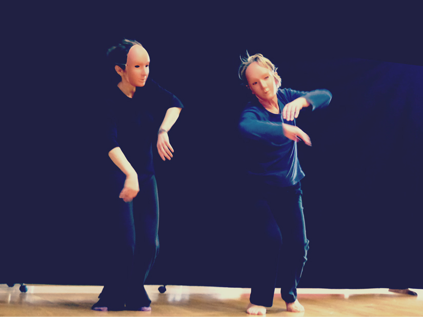 “The work was internally organic, due to the mask. It brought the circulation of the body into action / awoke a fluidic circulation. We worked the articulations of the body, its pivots with fine, co-ordinated and conscious movement. A lot of imagination and a lot of play. Thankyou. See you soon!”